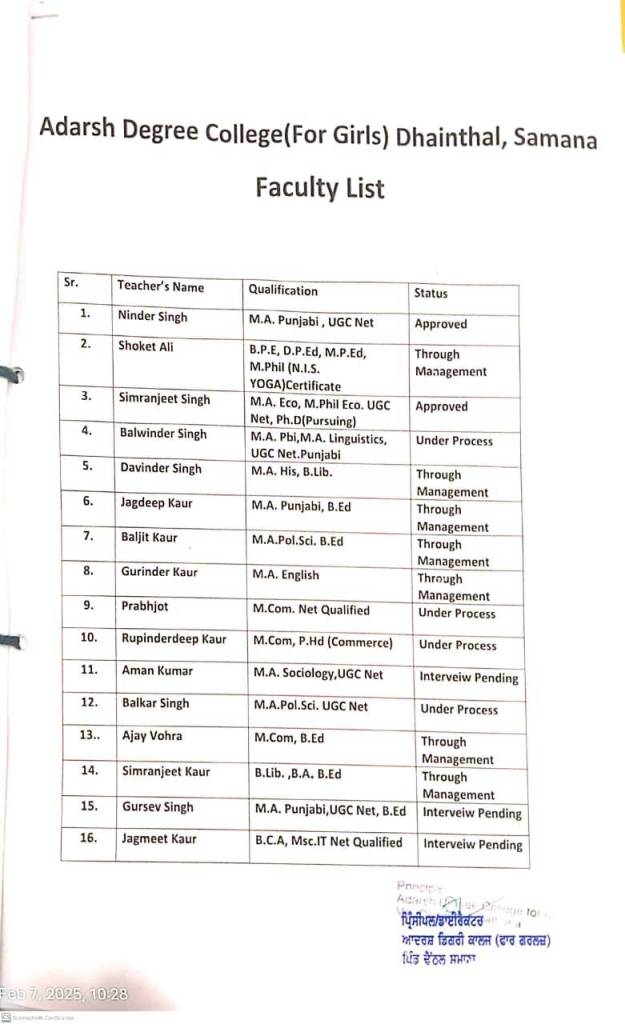 Following is the list of Faculty members of college